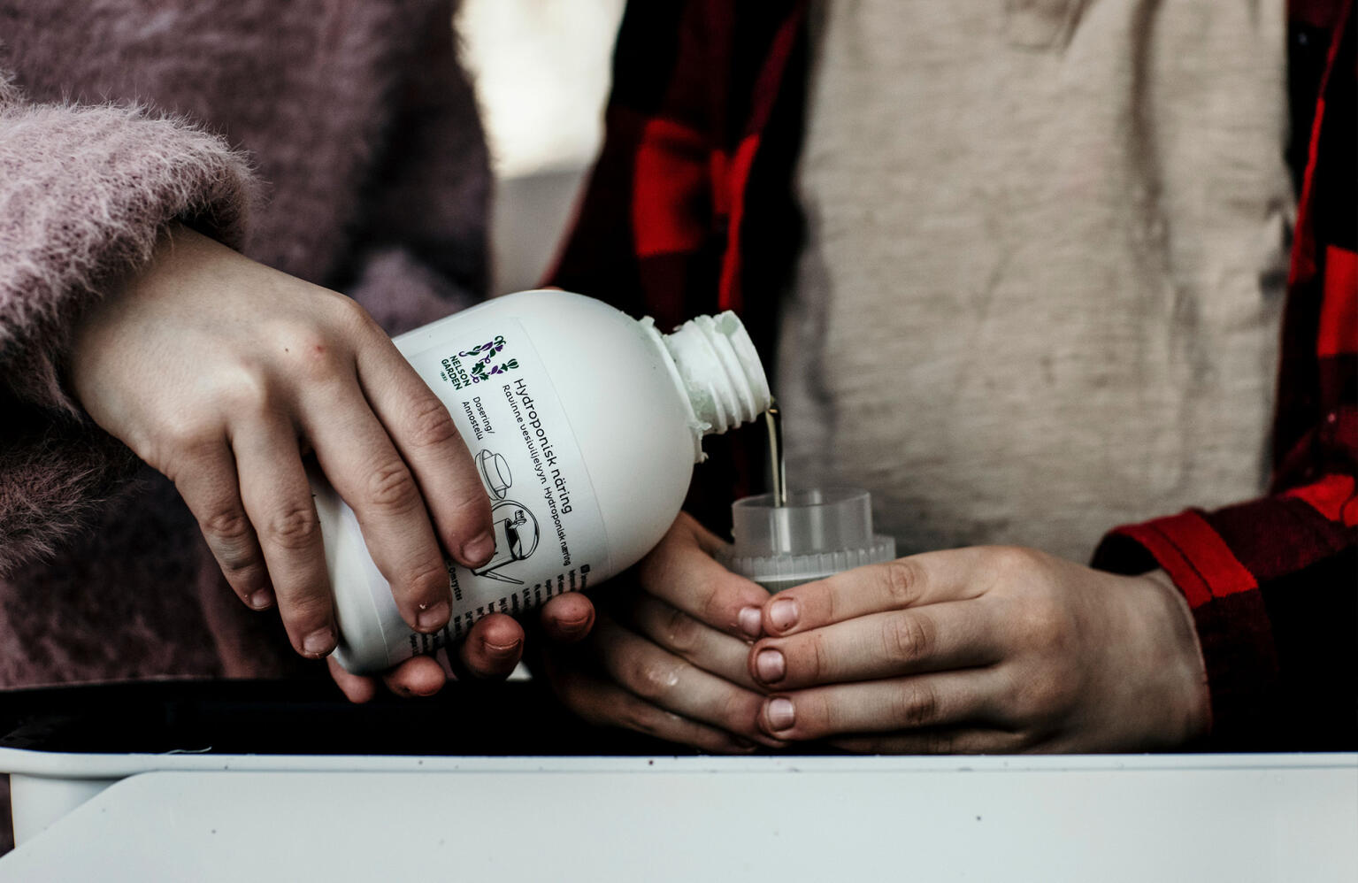 Du kan let se, hvornår det er på tide at tilføre dine planter vand og næring. Ved hjælp af målangivelsen i proppen bliver doseringen af næringen korrekt og enkel. Efterlad en luftspalte mellem planten og vandet, så får rødderne tilstrækkelig ilt under hele processen.