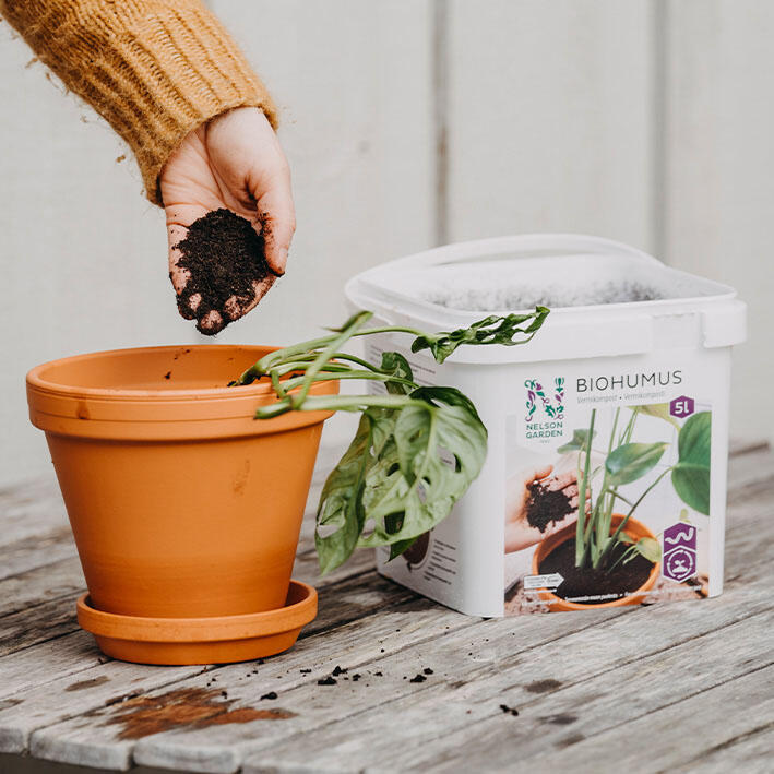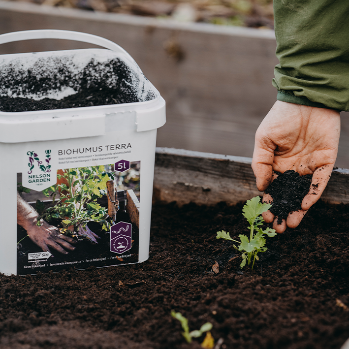 BIOHUMUS er rig på gavnlige jordbakterier og svampe, humus- og fulvussyre samt plantehormoner. Biohumus styrker også plantens modstandskraft over for sygdomme.