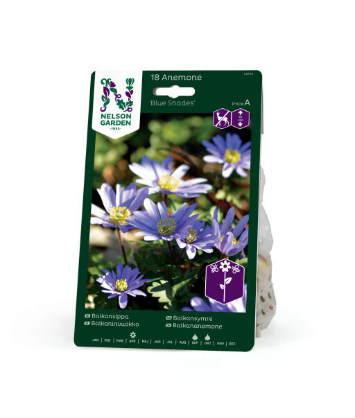 Sorten 'Blue Shades' har en smukt dybblå farve. Balkananemone er en rigtig charmetrold, der i udseende minder om vores egen hvide anemone. Anses for mindre appetitlig for rådyr, hare, kanin og mosegris.