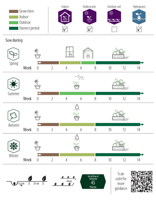 Mere detaljeret information om, hvordan du sår, findes på produktsiden, som du kan nå via QR-koden på posen.