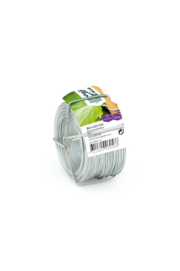 Galvaniseret ståltråd. Diameter 0,90 mm, længde 50 m.