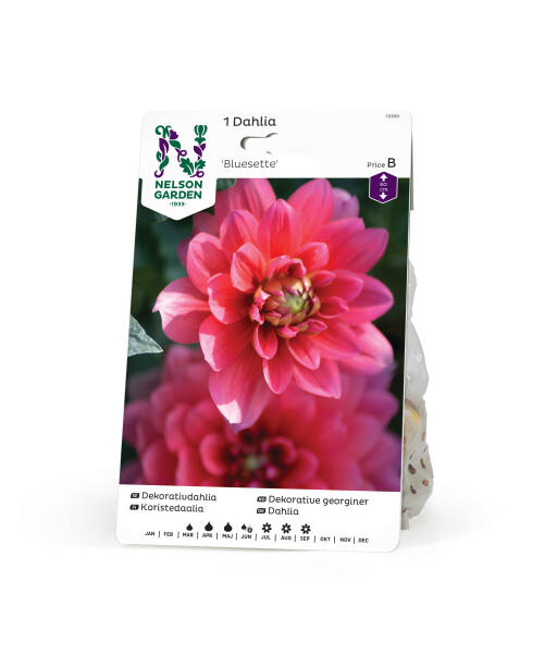 Uimodståeligt smuk, lavstammet dahlia med store blomster i en intens purpurrosa til lilla farve. Et ypperligt valg til forkanten af bedet, men også i potte.