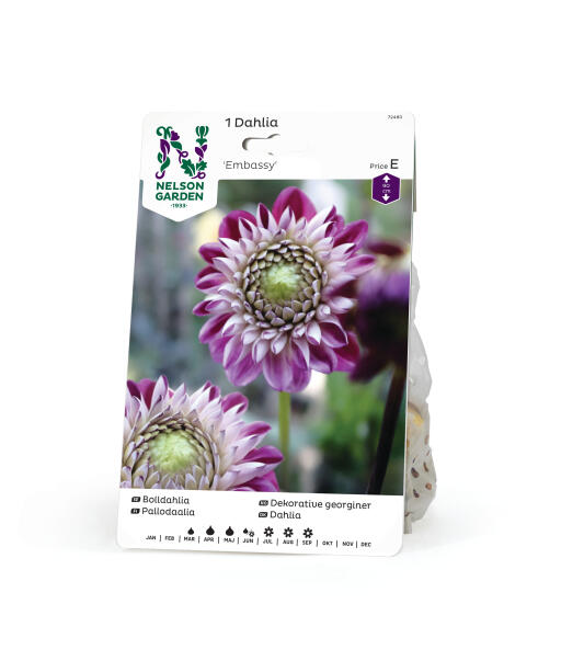En helt ny sort! Denne dahlia skifter fra sølv og mørkelilla fløjl til rosalilla silke. Når knoppen slår ud, ses kronbladenes sølvfarvede bagsider mod de dunkle forsider, medens den udslåede blomst lysner til en smuk silkekokarde.