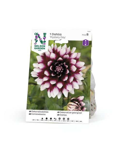 En virkelig pragtfuld, høj dahlia med opsigtsvækkende blomster i lilla og hvidt. En garanteret fuldtræffer i bede eller store krukker. Meget velegnet til snit.