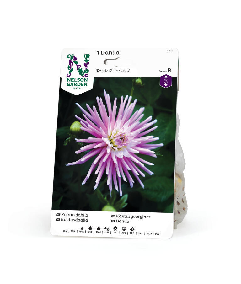 Lav kaktusblomstrende dahlia hvis intense blomsterpragt næsten skjuler løvet. Rosa, sammenrullede kronblade med lyse skudspidser. Meget flot i en smuk potte, men også plantet i grupper i bedet.
