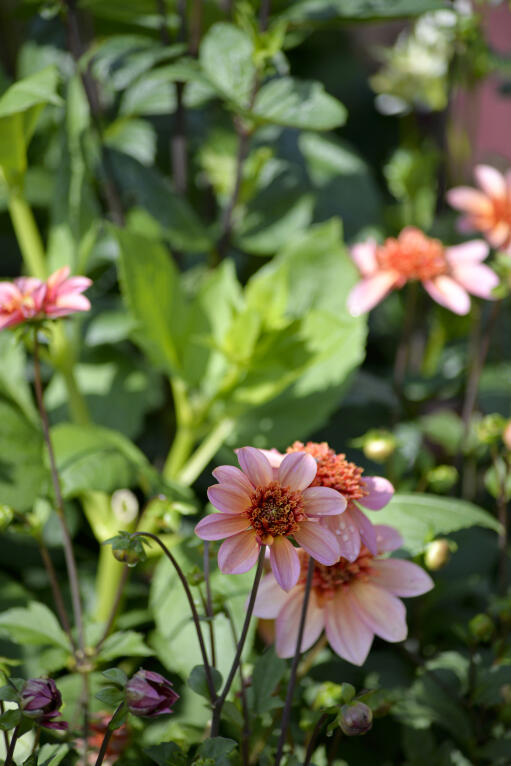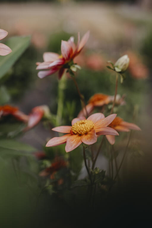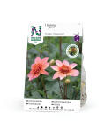 En af Linda Schiléns udvalgte favoritter. En enkel og dejlig romantisk, anemonedahlia i en varm lyserød orange nuance. Perfekt til at kombinere med andre farver og former i bedet eller buketten.
