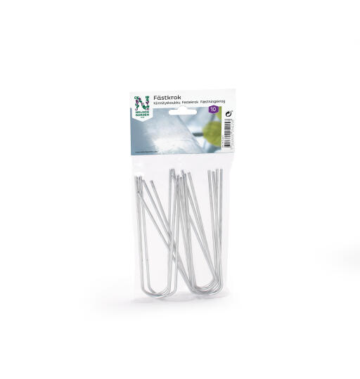 Med disse holdere til ukrudtsdug er din dyrkning sikkert beskyttet og vil ikke blæse væk når det blæser meget. Det forhindrer også dyr i at komme ind under dugen for at spise eller på anden vis beskadige dine planter. Disse U-formede spyd er lavet af galvaniseret metaltråd og fastgøres ved at stikke dem gennem dugen, ned i jorden.