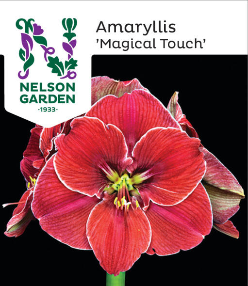 Elegant som en modedronning i fløjlsagtige røde nuancer. De store, velformede kronblade, der er som omgivet af hvid silke, og blomsterrosettens grønne centrum ligner et smykke. En magisk smuk amaryllis. Nem at dyrke og holdbar.