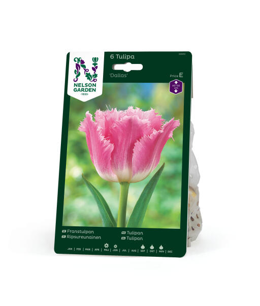 Kronbladene er smukt pink med hvid basis, og de lidt lysere, flossede kanter ser næsten ud som sarte blonder. Et par 'Dallas' i den pinke buket er virkelig prikken over i'et. En fantastisk snitblomst, der holder længe.