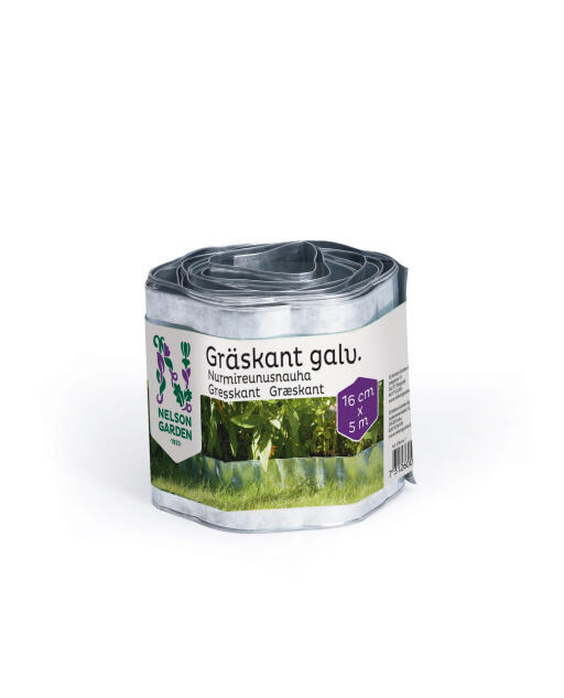 Praktisk og dekorativ; denne plæneafgrænser er fremstillet af galvaniseret metal. Plæneafgrænseren kan bruges til både lige og runde former. Brug den som en dekorativ afgrænsning omkring blomsterbede, træer eller andre beplantninger for at forhindre græs i at vokse der. 16x500cm.