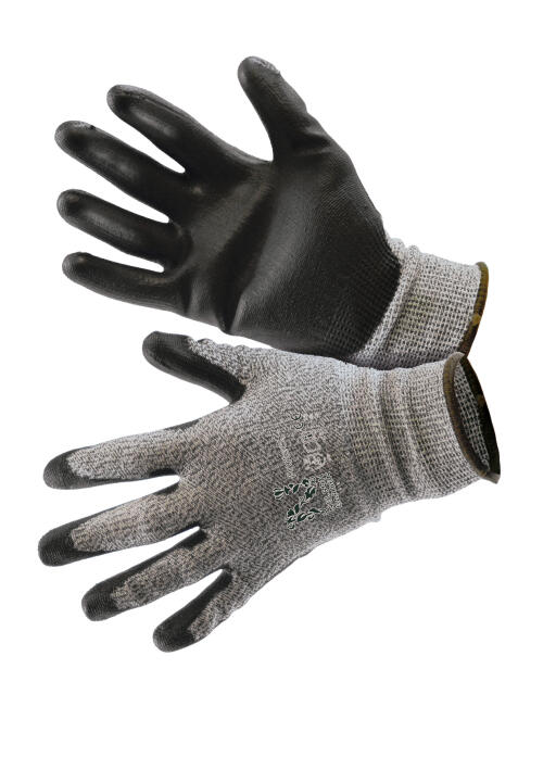 Strikket PU-dyppet skærebeskyttelseshandske. Perfekt ved havearbejde med risiko for skæreskader. Bekvem og med god fingerspidsfølelse. Af nylon, glasfiber og HPPE.