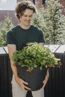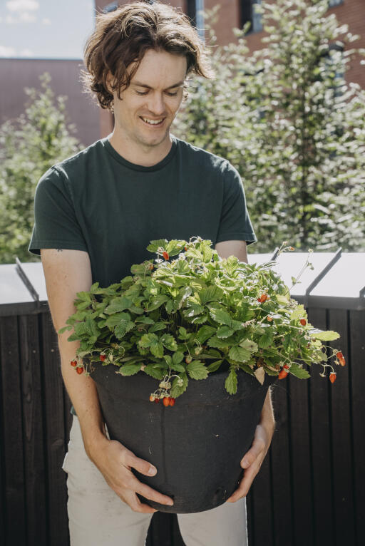 Smuk jordbærplante som blomstrer i hvidt og nuancer af rosa, tiltrækker sig virkelig opmærksomhed! Velegnet til at dyrke i ampel eller i potte. Har en busket voksemåde og danner udløbere. Får røde, ganske store bær, som kan høstes langt ud på efteråret, remonterende.