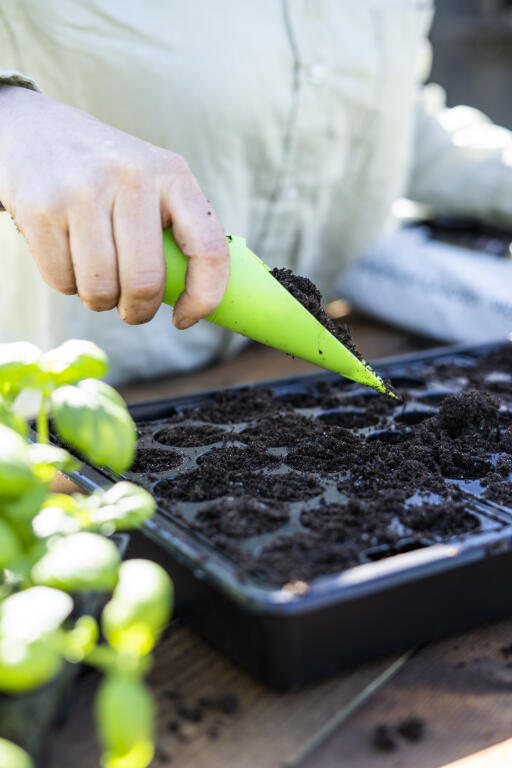 Enkel og praktisk jordøse til forkultivering og omplantning, når små potter skal fyldes med jord.