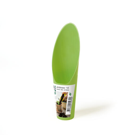 Lille og praktisk hjælpemiddel til forkultivering og omplantning, når små potter skal fyldes med jord. Jorden ender hvor den skal og kan også flades ud omkring planten med bunden af øsen.