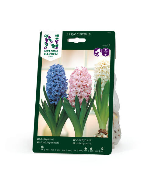 Hyacinter - disse herligt duftende løgplanter! Fin blanding hvor blomsterne er i rosa, cremehvide og blå nuancer. Disse løg er store og velegnede til indendørs dyrkning til jul.