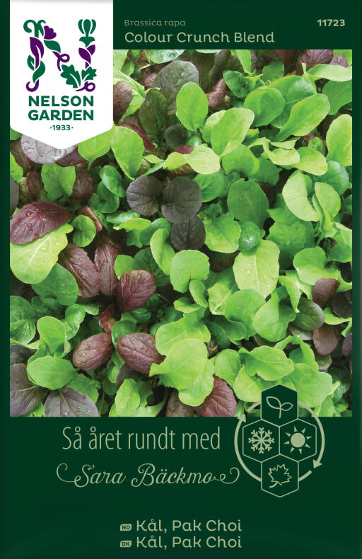 En mix af hurtigt voksende kål med sprøde stilke og milde blade. Bladene har forskellige farver, som er velegnede til at dyrke til høst af små blade tidligt og sent i sæsonen. Beskyt med net mod angreb af sommerfugle, møl og fluer.