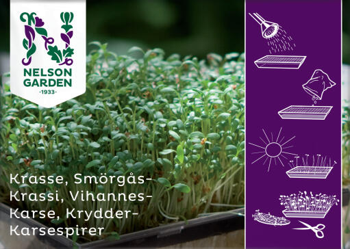 Velkendt, letdyrket og vitaminrigt pålægspynt. Dyrkes inden døre året rundt.