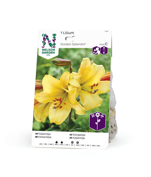 Gulblomstret variant af den populære og opsigtsvækkende Kejserlilje. Bliver ca. 1 m høj og får store, trompetformede gyldne blomster med mørkerøde striber på ydersiden. Tung og meget behagelig duft. Plantes i blandede bede eller i potter.