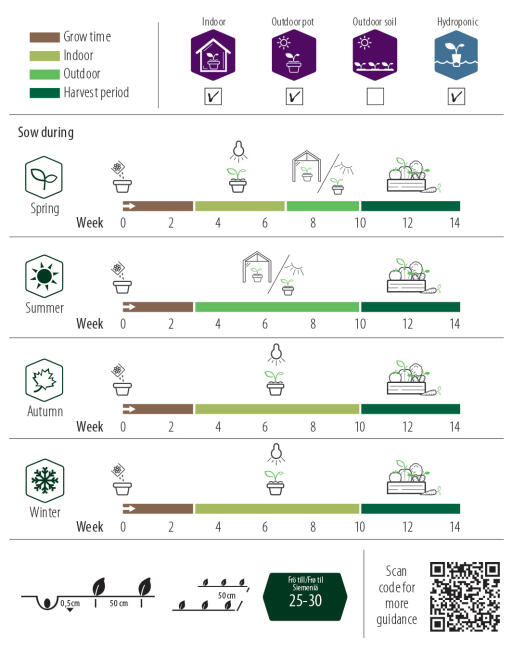 Mere detaljeret information om, hvordan du sår, findes på produktsiden, som du kan nå via QR-koden på posen.