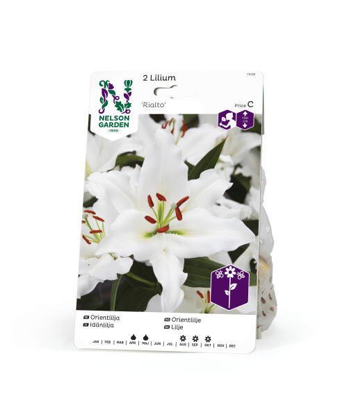 Ny orientalsk lilje med delikat formede blomster. Farven er rent hvid og blomsterbladene har elegant krusede kanter, som giver blomsterne et særligt sofistikeret udtryk. Bedøvende blomsterduft. Dyrkes i grupper i bedet eller i potter. God til snit.