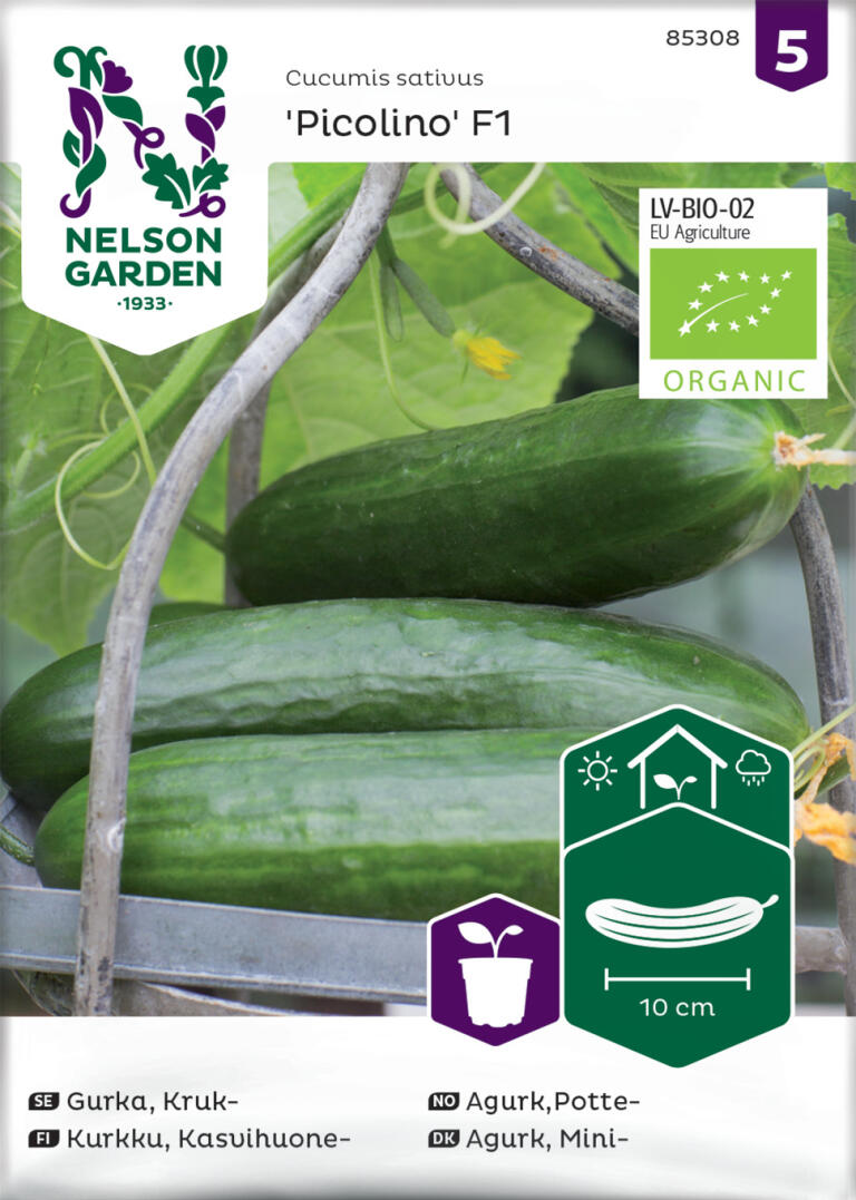 Lille agurk, glat skal. Kun hunblomster. Høstes fra ca. 3 mdr. efter såning. Forkultivér indendørs, med vækstbelysning, 1 frø/potte med 2/3 gødet jord og 1/3 såjord øverst. Lad spire i 25°C. Stil i stuetemp. Ved omplantning sættes planten i samme dybde som i såpotten, ikke dybere. Behøver støtte.