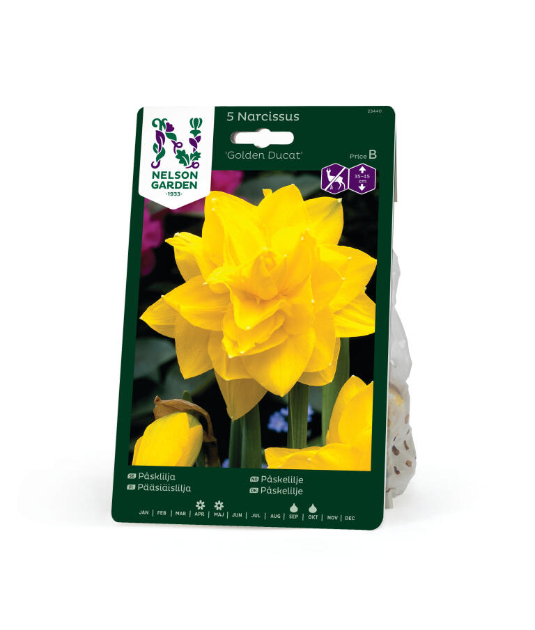 Et strålende blikfang i bedet - denne påskelilje har en fyldig, vidunderlig gul blomst, der lyser som guld i såvel bedet som blandt buske og træer. Anses for mindre appetitlig for rådyr, hare, kanin og mosegris.