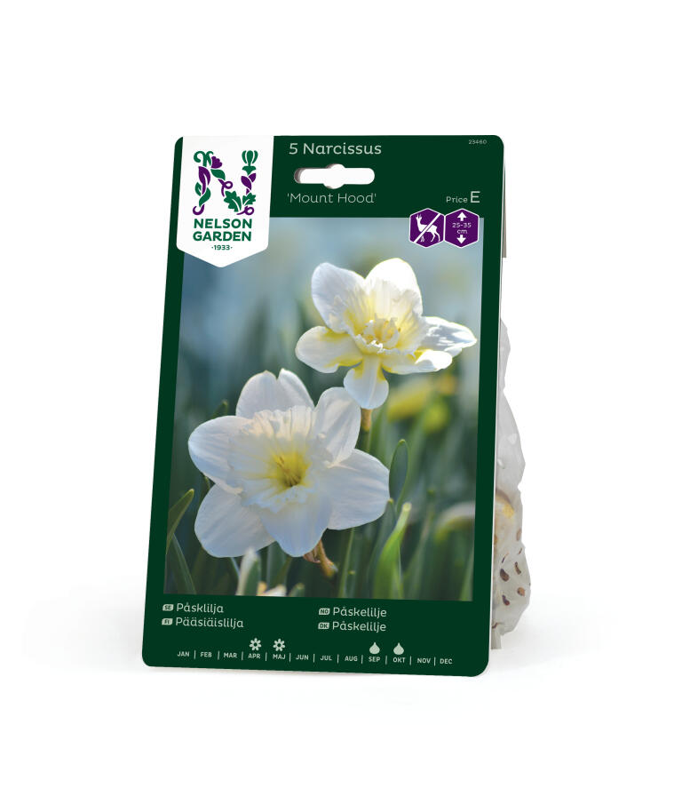 'Mount Hood' er en påskelilje, der hører til de enkeltblomstrende. Den har store blomster, der starter i gult og derefter i cremehvidt. Passer godt både i bede, blandt buske og under træer. Anses for mindre populær hos rådyr, hare, kanin og mosegris.