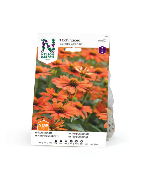 Echinacea eller havepurpursolhat, i en rig orange tone. Blomstrer rigeligt lidt senere på sæsonen, elsket af bier og sommerfugle. Flot i både potte og bed og kan også bruges som snitblomst.