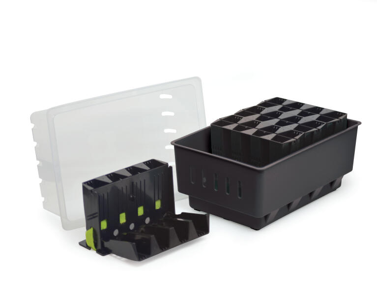 Kompakt minidrivhus med selvvandingsfunktion, hvilket forenkler dyrkningen. Pottecellerne kan åbnes for en skånsom håndtering af planterne. B 19,5 cm, L 29 cm, H 21 cm.