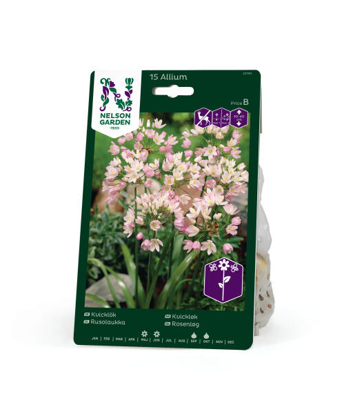 En Allium hvis lys/rosa, romantiske blomsterstande skaber søde blomsterbuketter. Anses for mindre appetitlig for rådyr, hare, kanin og mosegris.