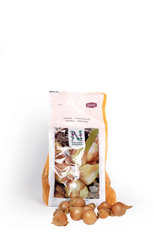 Sætteløg. Skalotteløg vokser i knipper, og hvert sætteløg bliver et nyt knippe løg. Smagen er mild og aromatisk, meget velegnet til madlavning. Herlig farve som skifter fra hvidt til violet.