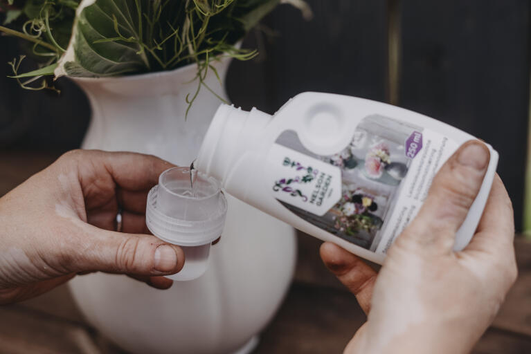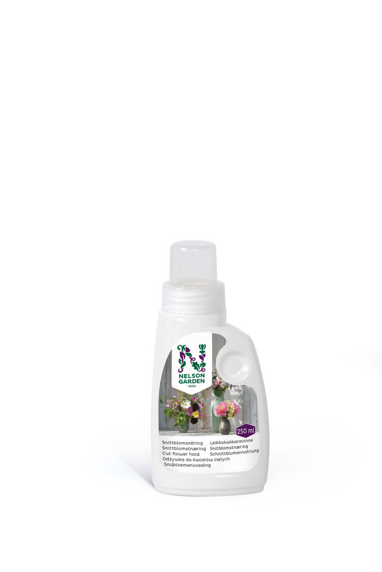 Forlænger holdbarheden for afskårne blomster i vase. Opløsningen er ufarvet og er hverken synlig eller misfarvende, men holder vandet i vasen frisk i længere tid. Koncentrat.