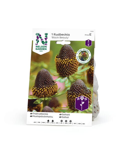 Denne meget specielle solhat har frodige, grøngrå blade og er unik af sin art med store, purpursorte, koniske blomsterknapper omgivet kun af grønne bægerblade og helt uden kantblomster. Passer glimrende i bedet. Meget dekorativ til snit.