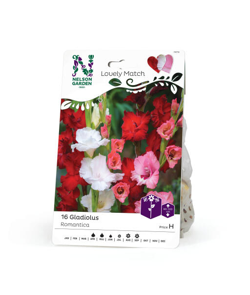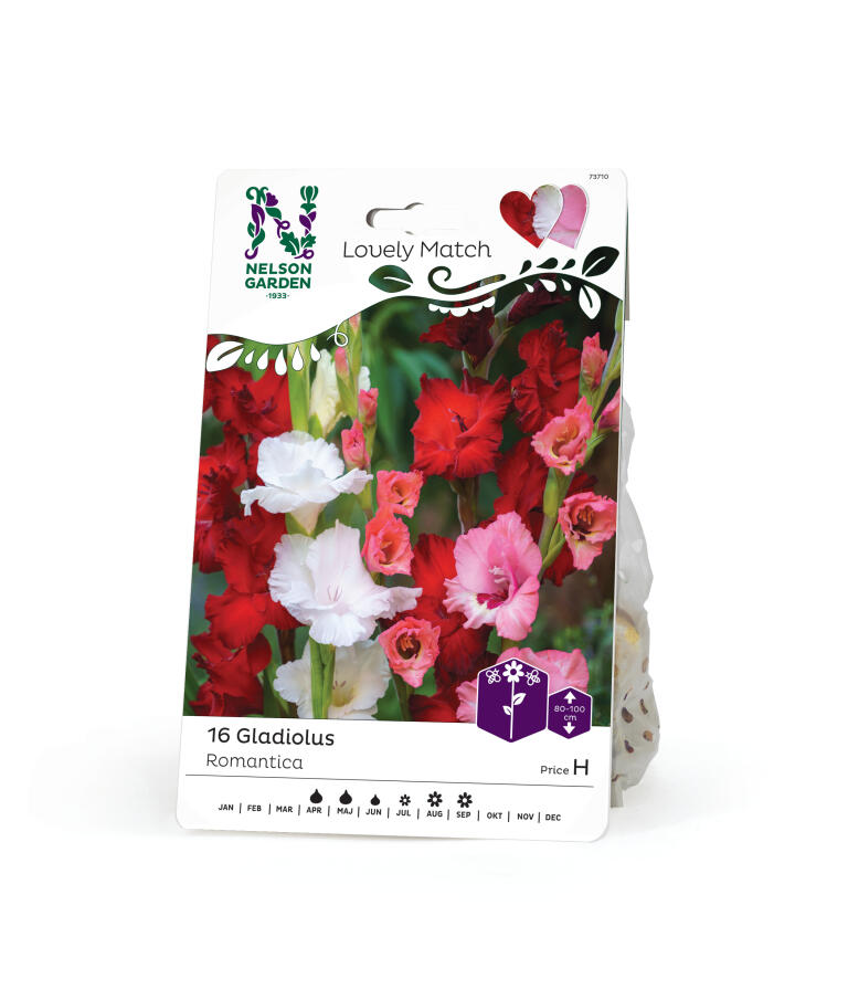 En smuk kombination af storblomstrerne gladiolus i intense farver. Plant dem i et bed eller stor krukke. Når den nederste blomst blomstrer, så tøv ikke med at plukke en buket. En pragtfuldere buket er svært at finde.