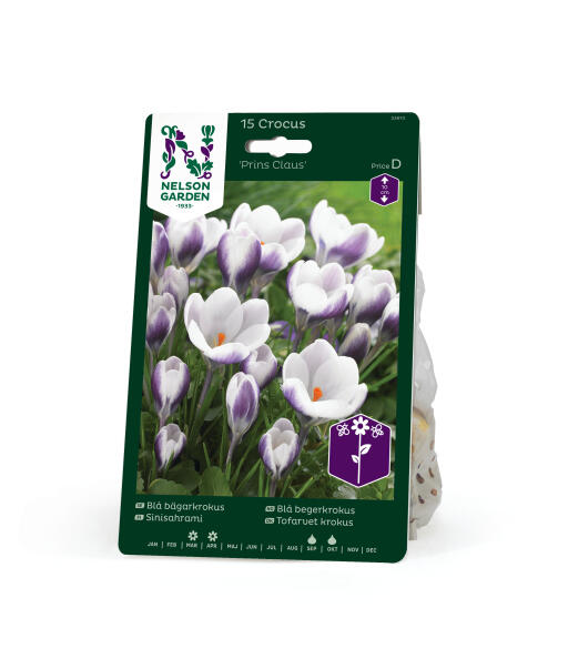'Prins Claus' er en sort af tofarvet krokus, som har hvide blomster, hvor de ydre blomsterblade har blåviolette pletter. Foruden i bede passer den godt i kanten af buske og foran træer, hvor forårssolen skinner. Smuk plantet i grupper i tyndt græs.