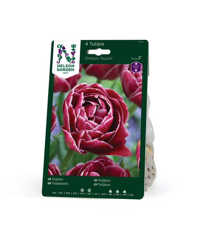 En drøm i hindbærrødt med et strejf af hvidt langs kanten. Den store blomst med dens overdådige samling af kronblade ser næsten ud som en eksotisk pæon. Nem at kombinere med andre blomster i pink, lilla eller hvid.