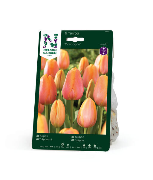 'Dordogne' er høj, elegant og duftende. De mango- og rosafarvede kronblade springer ud, når frugttræerne står i blomst og passer udmærket i deres selskab. En buket med Dordogne og andre purpurfarvede og vinrøde tulipaner er en given succes.