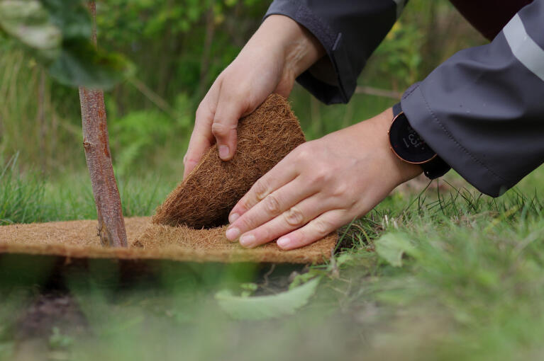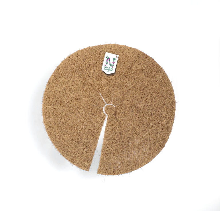 Rund måtte af kokosfibre, der forhindrer ukrudt og bevarer fugten i jorden. Snittet mod hullet i midten gør den nem at placere omkring træer eller buske. Kan evt. dækkes med bark.