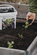 • Når du forbedrer jorden i blomsterbede og pallerammer, bruges en spand Biohumus Terra pr. 2 kvadratmeter