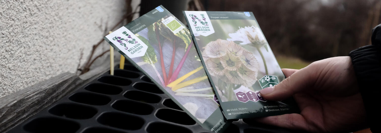 I år dyrker vi to frøsorter, som vi er ekstra glade for. Dette års grøntsager er en bladbede kaldet Fireworks, som er et farverigt indslag i dyrkningen. Årets blomst er den søde stjerneskabiose 'Paper Moon', der med sine smukke frøstande pynter i buketter året rundt!