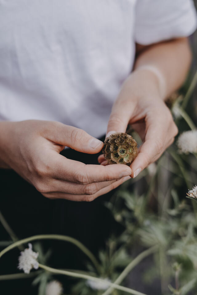 'Paper Moon', er en sød stjerneskabiose, der passer perfekt i både friske buketter og evighedsbuketter. 'Paper Moon' blomstrer med små hvide blomster, men det er hovedsageligt for sine dekorative frøstande, at denne skønhed dyrkes. Den er også populær blandt både bier og sommerfugle.