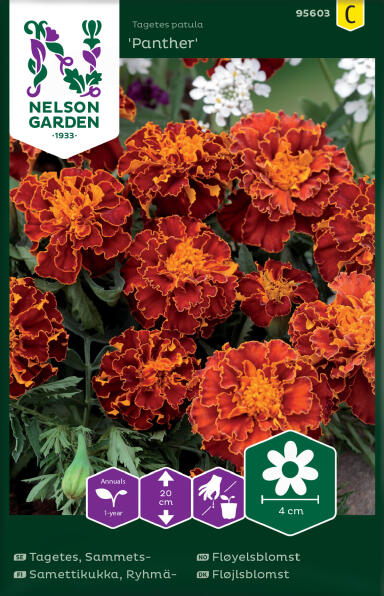 Tagetes bliver ofte brugt som kantplanter i blomsterbedet eller i sammenplantninger i en potte. Men vidste du, at der også er højtvoksende tagetes, der er perfekte i en buket? 'Burning Embers' er en fløjlsblomst, der bliver omkring 60-70 cm høj, og med sine bronzerøde blomster lyser den som små knapper i buketten.