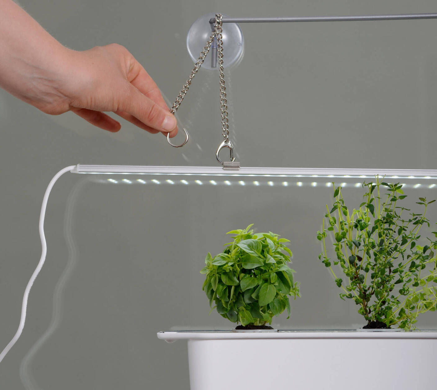 I de mørke måneder skal du give din indendørs dyrkning ekstra belysning. Til Harvy anbefaler vi vores energieffektive LED-lysbjælke.